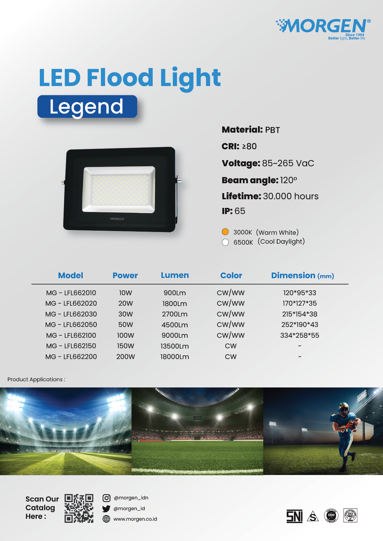With an elegant and minimalist design, this floodlight offers a lighting solution for large areas. Suitable for stadiums, fields, parking areas, construction areas, and all other outdoor spaces.