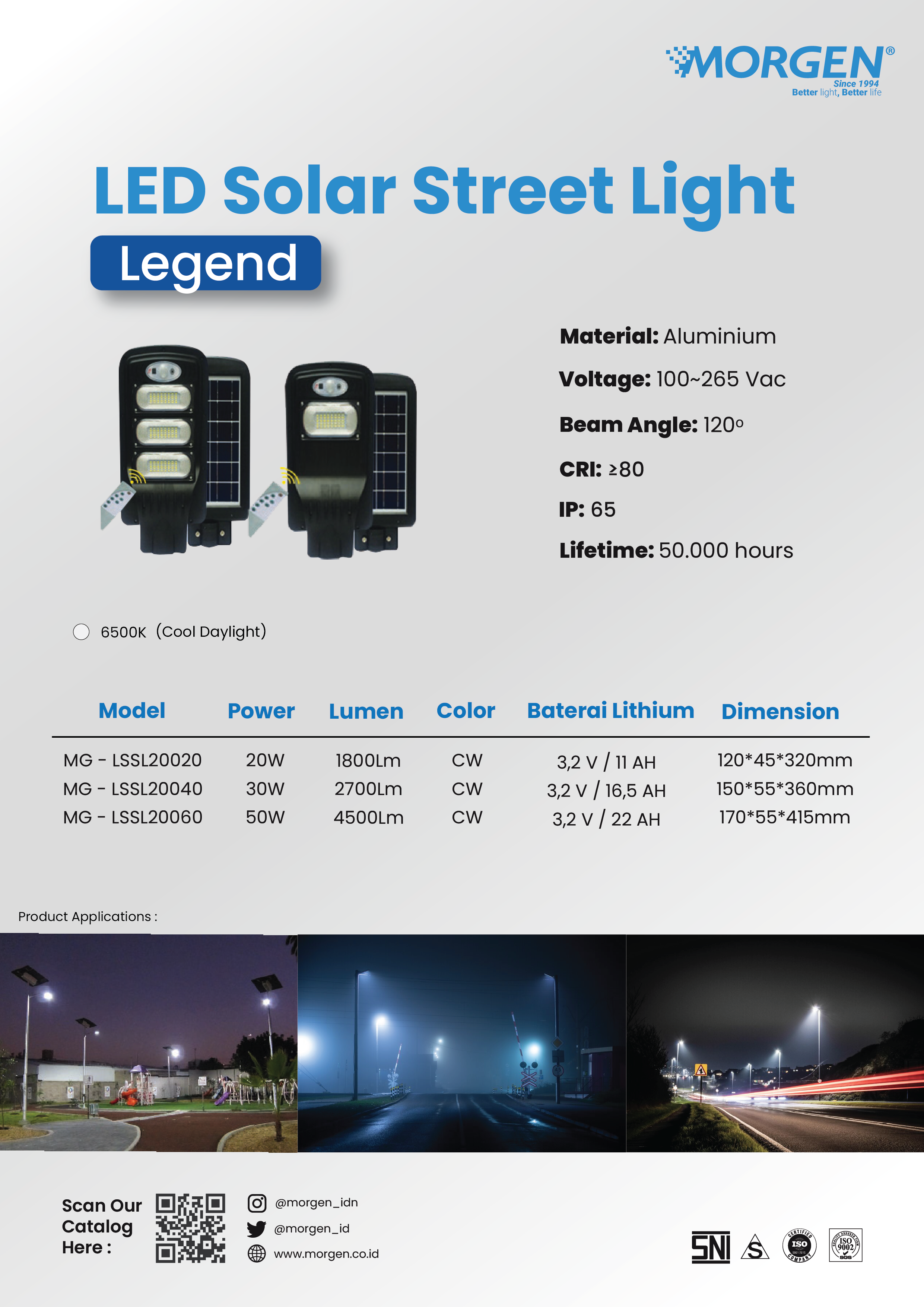 Enjoy maximum lighting, energy saving, and environmentally friendly with the Morgen LED Solar Street Light Legend Series!