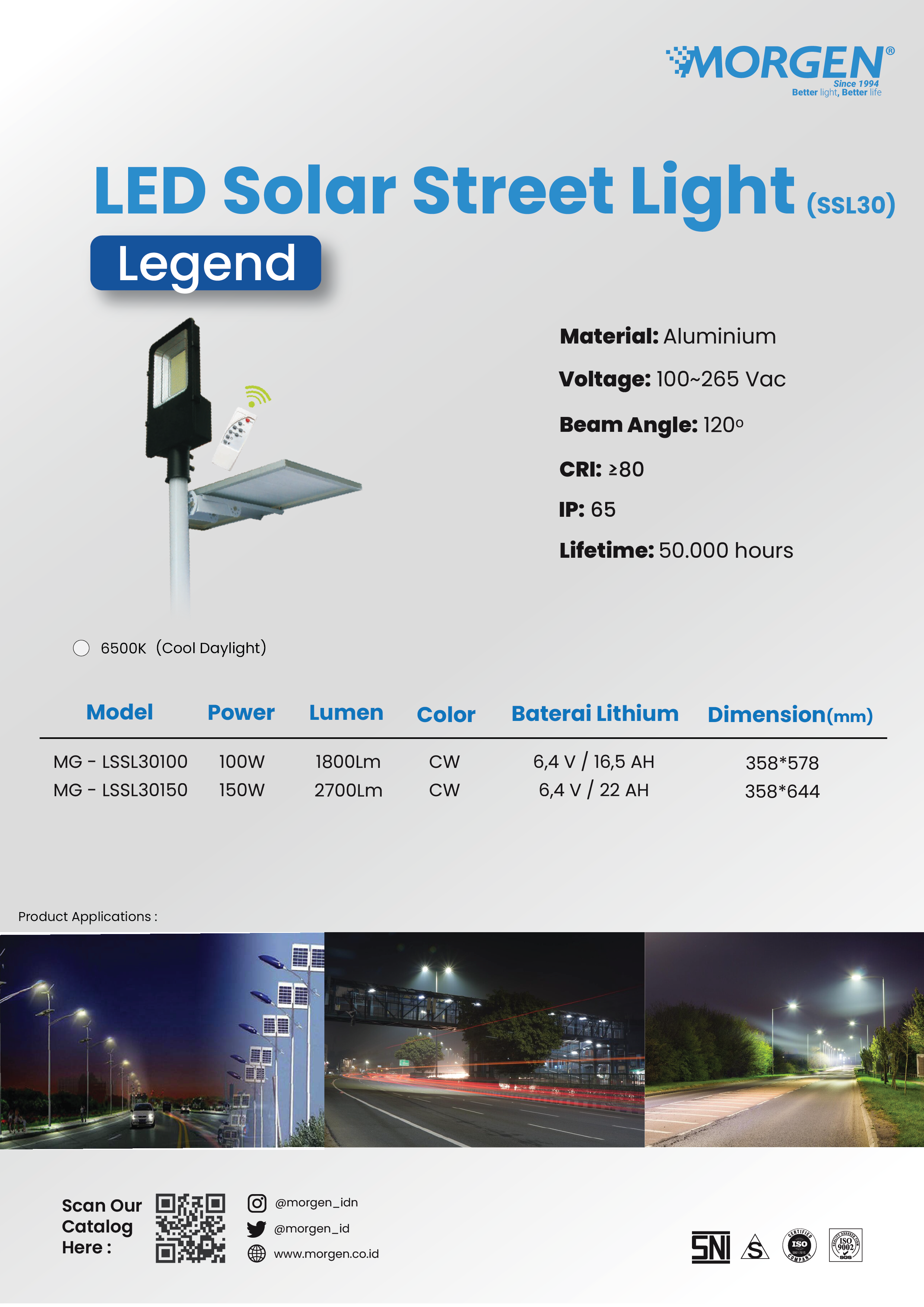 Enjoy maximum lighting, energy saving, and environmentally friendly with the Morgen LED Solar Street Light Legend Series!