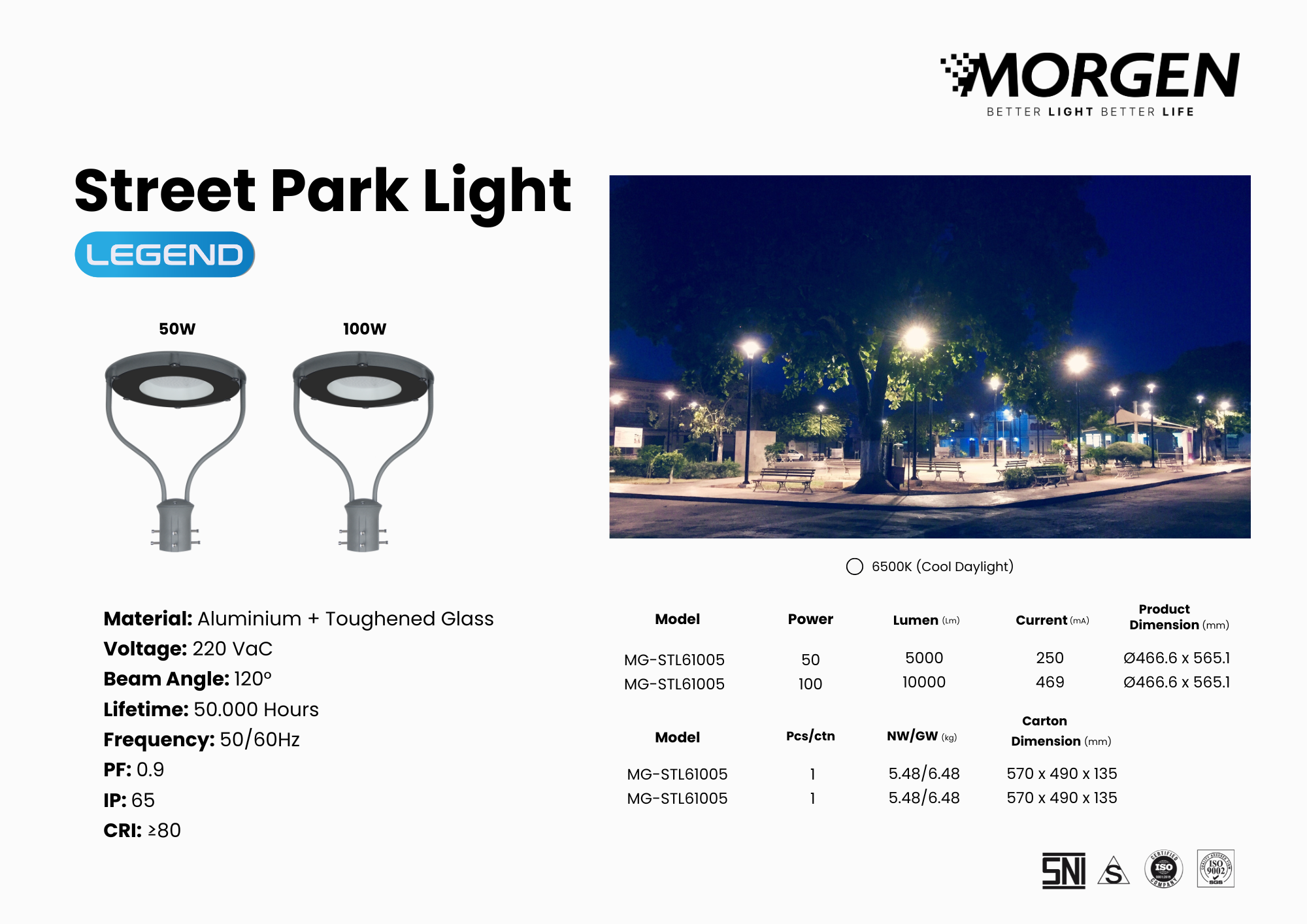 Brighten up parks and public areas with greater safety and comfort using the Morgen LED Street Park Light Legend Series!