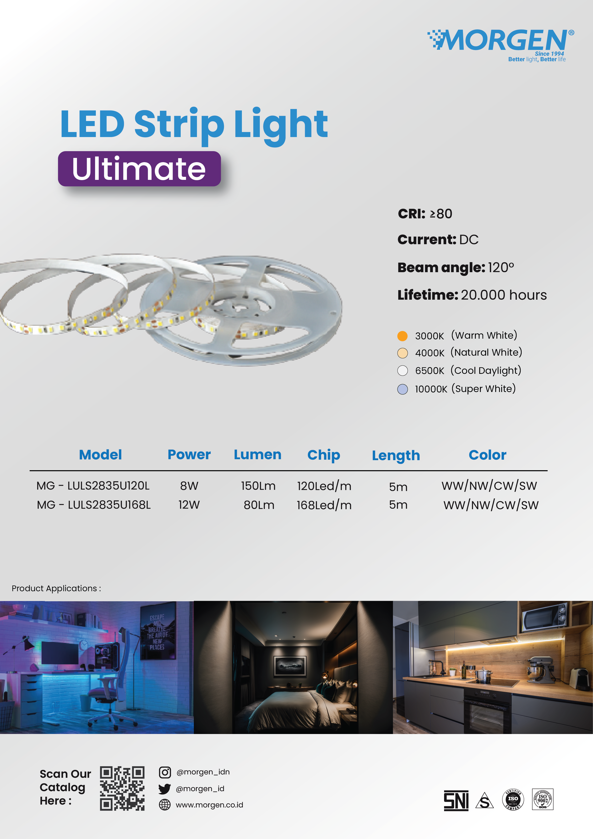 Bring a new atmosphere to every corner of your home with Morgen LED Strip Light Ultimate! Provides a beautiful and even lighting effect, adding an elegant and comfortable impression to the room.